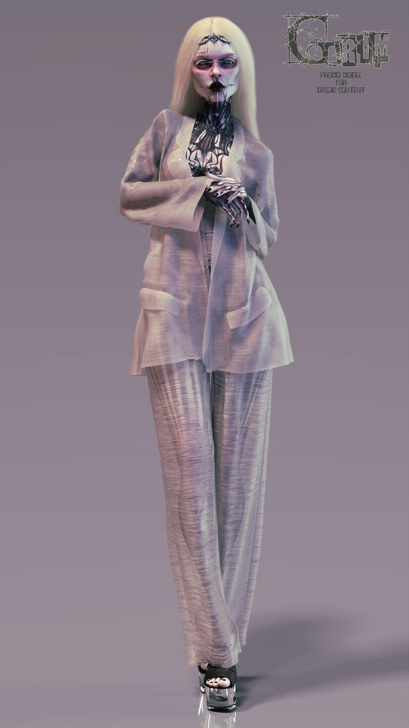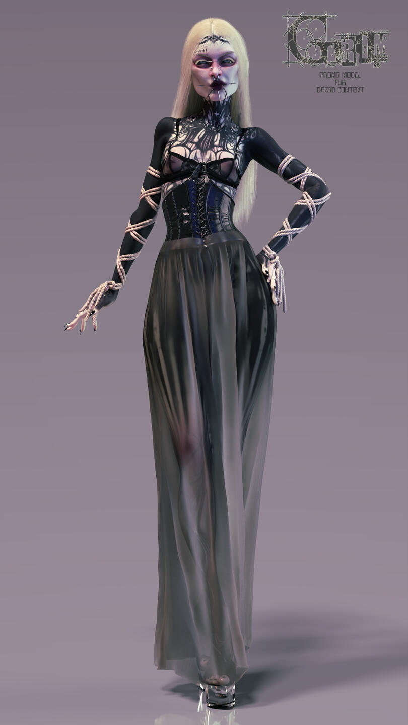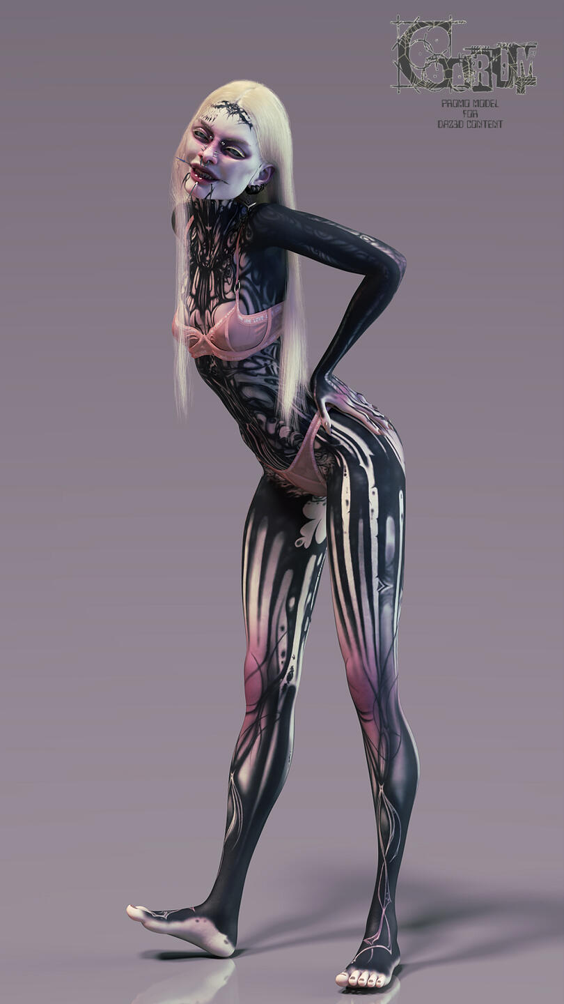 Grim is a petite, slim, G9 'for hire' art promo model for Daz3D content.You send the assets; you get art promos in return.